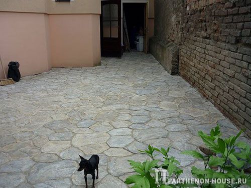 Особенно рекомендуется производить мощение смесью Графито горизонтальных поверхностей с высокими эксплуатационными нагрузками. Специально разработанная для этих целей смесь Графито легко наносится на основание пола, не образуя воздушных пузырьков и подтёков. В ее состав включены дополнительные ингредиенты, которые обеспечивают схватывание даже при предельном температурном режиме. В качестве декора печатный бетон Графито можно применять при облицовке полов в различных помещениях (столовой, холла, бани), а также для оформления тропинок, тротуаров, двориков, платформ бассейнов и декоративных водопадов.