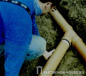 Трубы укорачиваются мелкозубчатой пилой: край среза зачищается наждачной бумагой и слегка закругляется. Так труба легче входит в соединение со следующей трубой. При соединении труб нельзя нарушать "песчаную постель". Уклон должен сохраняться.