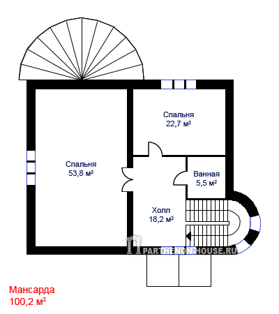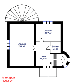 Как видим это очень суровые условия, но они характерны для регионов России находящими в северных широтах, Сибири, на Урале, в нижнем Поволжье, а это практически 2/3 территории всей страны. Исходя из этих условий, архитекторы разработали и внутренние планировки, которые максимально соответствуют понятиям комфорта и уюта. Представим себе суровый январь где-то в Прибайкалье под Иркутском и дом, выстроенный по проекту ЯА 355-3. За стенами выложенными из блоков ячеистого бетона в 600 мм. толщиной с утеплителем 50-90 мм. тепло и уютно. На улицу выходить совсем не хочется, но как скоротать долгие зимние вечера и чем занять себя? У жильцов этого дома с этим нет никаких вопросов. Хозяйка дома занята приятными хлопотами по устройству оранжереи в зимнем саду. Хозяин дома с детьми занимается в тренажерном зале или играет в бильярд с друзьями, а вечером все вместе после горячей и расслабляющей сауны, собираются в гостиной у камина. Если есть желание, то всегда можно заняться чем-нибудь полезным по хозяйству у себя в мастерской. А после дневных и вечерних забот все семейство поднимается на мансардный этаж, где расположены спальные комнаты. Их всего две, но посмотрите на размеры этих спален. Одна 22,70 кв.м., а вторая 53,80 кв.м. Как вы понимаете, вторая комната всегда может быть разделена на две части ненесущей перегородкой, а после небольших изменений эти комнаты могут стать изолированными с отдельными входами. Для удобства жильцов дома на каждом этаже имеется санузел, а на мансардном этаже ванная комната. Дом для постоянной жизни за городом семьи из 4-5 человек.