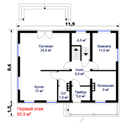 2.8. Длина х ширина здания - 11,9 х 8,60 м.