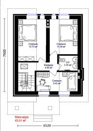 Габаритные размеры дома: 6,520 х 9,450 м. (с крыльцом)