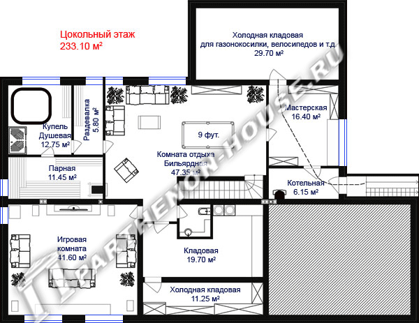 Банный комплекс (купель, парная, душевая): да. (Вариант №2)