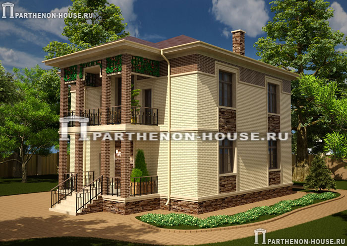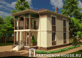 Проект двухэтажного дома с подвалом. Наружные несущие стены дома выполнены из крупноформатных керамических поризованных камней.