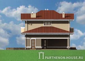 Простой в технологии строительства и в то же время элегантный по внешним архитектурным решениям современный загородный двухэтажный дом. Особо хочется отметить удобные и рациональные планировки. Обращают на себя внимание наличие второго света в прихожей (холле) и просторная терраса, выход на которую есть в гостиной и кухне-столовой. Плюсом является также пристроенный к дому навес для парковки одного автомобиля.