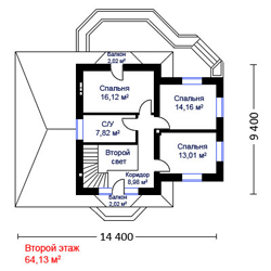 Габаритные размеры дома: 14,40 х 15,20 м. (размеры с учетом террасы)