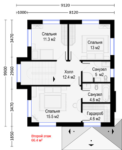 Габаритные размеры дома: 9,120 х 9,900 м. (без крыльца)