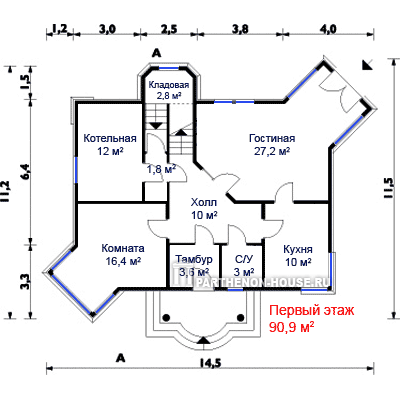 Габаритные размеры дома: 10,0 х 14,9 х 8,30 м.