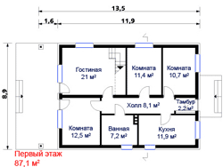 Габаритные размеры дома: 8,9 х 13,5 х 6,60 м.