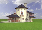 Двуэтажный дом, с подвалом. (частично) Максимальное количество жильцов: 6 человек. Камин: да. Гараж: да. Площадь застройки: 143,6 кв.м. Площадь общая: 328,7 кв.м. Площадь нетто: 203,9 кв.м. Площадь жилая: 137,0 кв.м. Кубатура: 898,0 куб.м. Крыша: Площадь крыши: 245,0 кв.м. Угол наклона крыши: 30. Кубатура древесины стропильной конструкции крыши: 16,4 куб.м. Технология и конструкция: керамика. Наружные стены: слои из сплошного керамического кирпича класса 15 МПа на цементно-известковой стяжке марки 3 МПа, утепленные слоем стиропора или минеральной ваты, облицованные многодырчатым кирпичом. Оба слоя кладки необходимо соединить стальными оцинкованными анкерами, по горизонтали и вертикали. Внутренние стены: из сплошного или пустотного кирпича класса 15 МПа на цементно-известковой стяжке марки 3 МПа. Перекрытие: железобетонное. Конструкция крыши: деревянная. Лестница внутренняя: железобетонная. Лестница, ведущая на антресоли: деревянная. Фундамент: ленточный монолитный ж/б. Отделка. Кровля: керамическая черепица или кровельный листовой металл. Фасад: тонкослойная штукатурка. Цоколь: облицовочный кирпич. Габаритные размеры дома: 10,5 х 13,8 х 12,00 м. Минимальные размеры участка: 22,0 x 22,2 м. Зеркальная проекция: нет. Проект в другой технологии строительства: нет. | ||