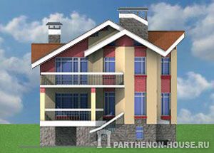 Современный проект дома с подвалом. Двухэтажный жилой дом с подвалом и мансардой запроектирован для индивидуального строительства. Планировка дома - улучшенная. В подвале расположена котельная, сауна, комната отдыха, рабочая комната, цветочная, кладовая, холл. На первом этаже находится прихожая, гостиная с камином, кухня-столовая, детская с выходом на веранду, санузел, холл. На мансардном этаже размещены: холл, три спальни, ванная, санузел, зимний сад. Для выхода на чердак предусмотрен люк со стремянкой.