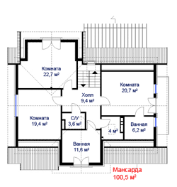 Габаритные размеры дома: 10,0 х 10,9 х 7,70 м.
