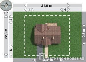 Минимальные размеры участка: 21,9 x 22,3 м.