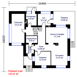 Габаритные размеры дома: 16,12 х 13,82 м.