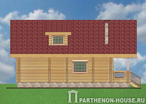 Одноэтажный дом с мансардой, без подвала. Проект деревянного узкого дома из оцилиндрованного бревна для постоянного проживания за городом.