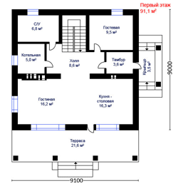 Габаритные размеры дома: 9,100 х 9,000 м. (без террасы)