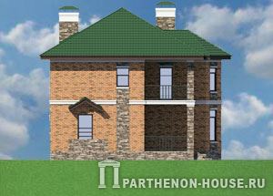 Наружная отделка: цоколь - облицовка камнем, стены - лицевой кирпич, камень и декоративные фасадные элементы.