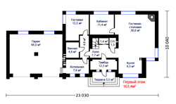 Габаритные размеры дома: 23,030 х 10,040 м.