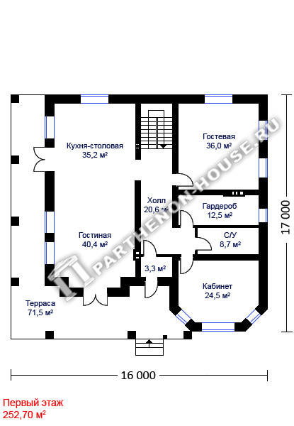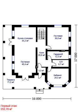 Габаритные размеры дома: 16,000 х 17,000 м.