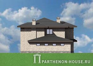 Наружная отделка: цоколь - облицовка камнем, стены - лицевой кирпич и декоративные элементы.
