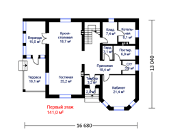 Габаритные размеры дома: 16,680 х 13,040 м. (в осях)