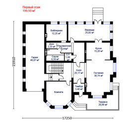 Габаритные размеры дома: 17,250 х 15,910 м.