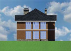 Проект двухэтажного дома с жилой мансардой. Фасад дома отделан камнем, лицевым кирпичом, декоративными элементами.