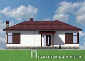 Проект одноэтажного дома в технологии строительства из кирпича с отделкой фасада дома камнем и штукатуркой.