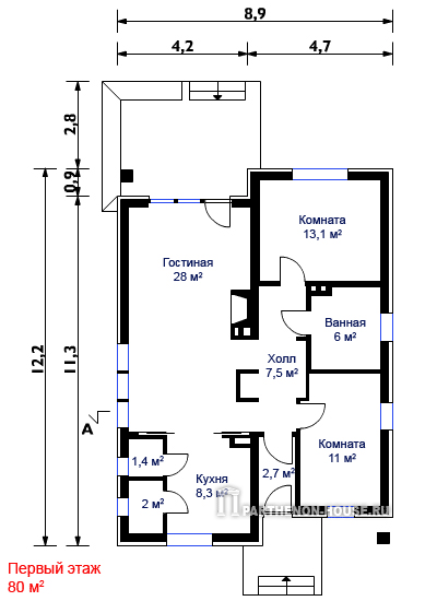 Габаритные размеры дома: 12,2 х 8,9 х 5,60 м. Минимальные размеры участка: 16,9 x 22,2 м. Зеркальная проекция: нет. Проект в другой технологии строительства: нет.