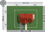 Минимальные размеры участка: 21,7 x 20,3 м.