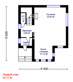 Габаритные размеры дома: 8,40 х 9,60 м.