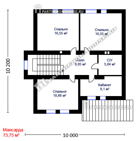 Габаритные размеры дома: 10,00 х 10,20 м.