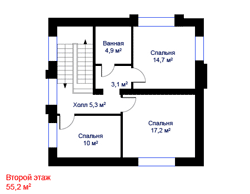 Проект двухэтажного дома с гаражом, без подвала. На первом этаже разместились тамбур, гардероб, прихожая, кухня, гостиная, санузел, гараж и котельная. На втором этаже находятся три спальни, холл и ванная. Дом для постоянного проживания.
